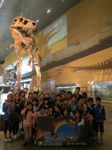 最後に全員でティラノサウルスの前で記念写真を撮りました。