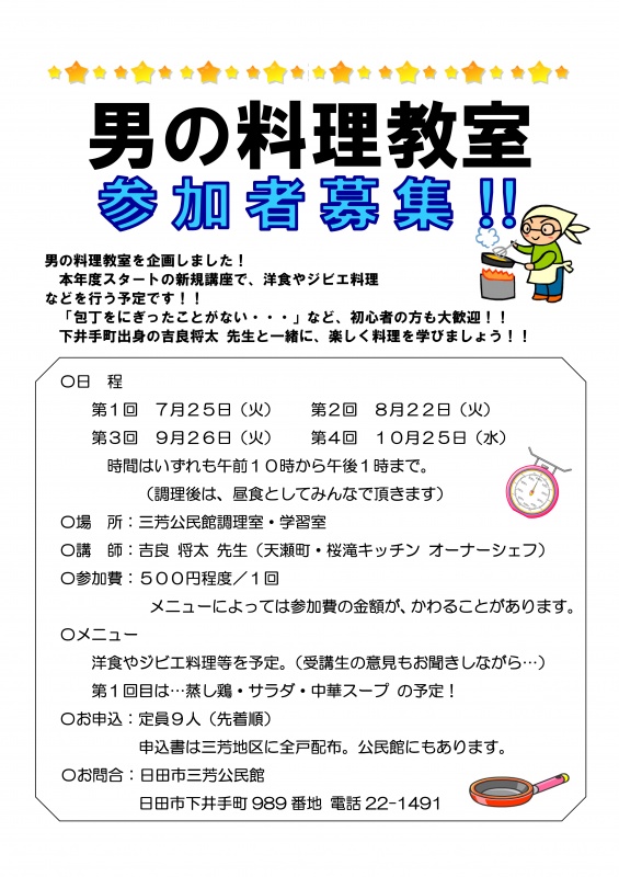 男の料理教室を募集します!!