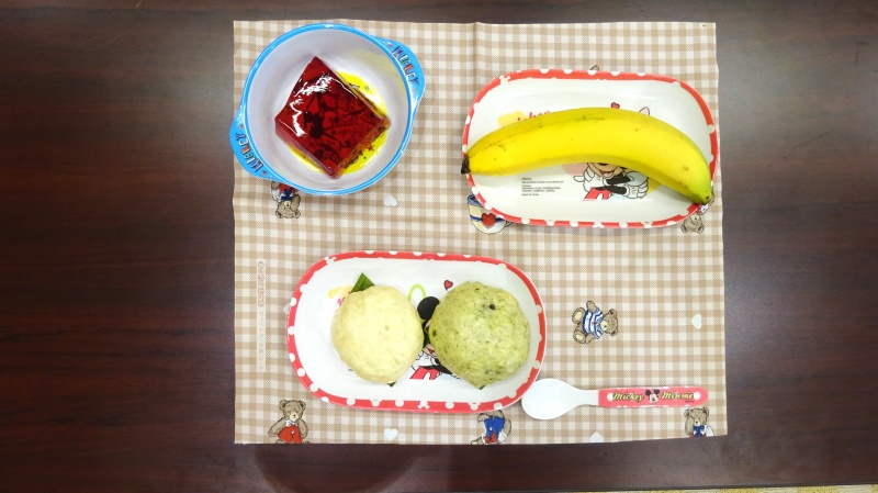 最後は手作りおやつ。今回は七夕まんじゅうとゼリーです。