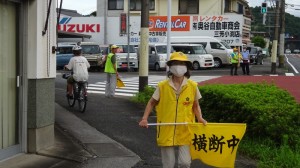 7月13日(土)から19日(金)までの「夏の交通安全週間」、三芳地区交通安全協会の皆さんが三芳小渕町の交差点等に立って、交通安全を呼びかけました。