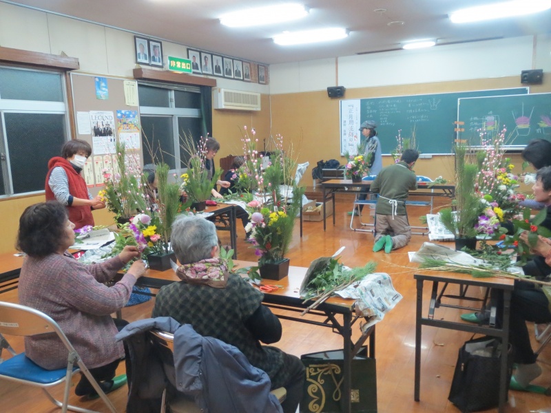 その後、先生のお手本を見ながら、まずは奥のほうから花を活けていきました。