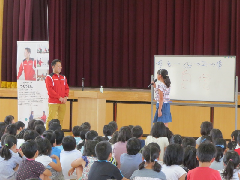 最後に児童を代表して6年生が『きちんと挨拶をすることと悩みがあったらなるべく