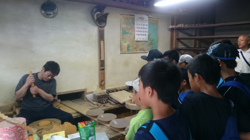 その後窯元さんの家で実際にお皿を作成するところを見学し、土の作り方や登り窯についても説明をしていただきました。