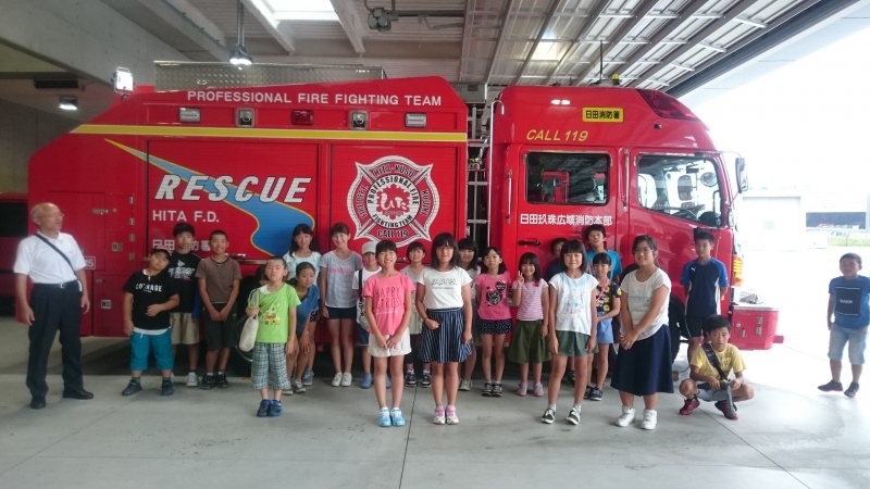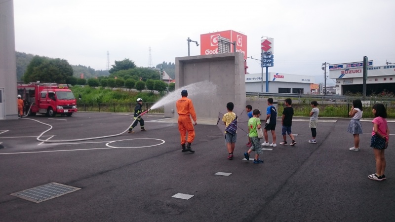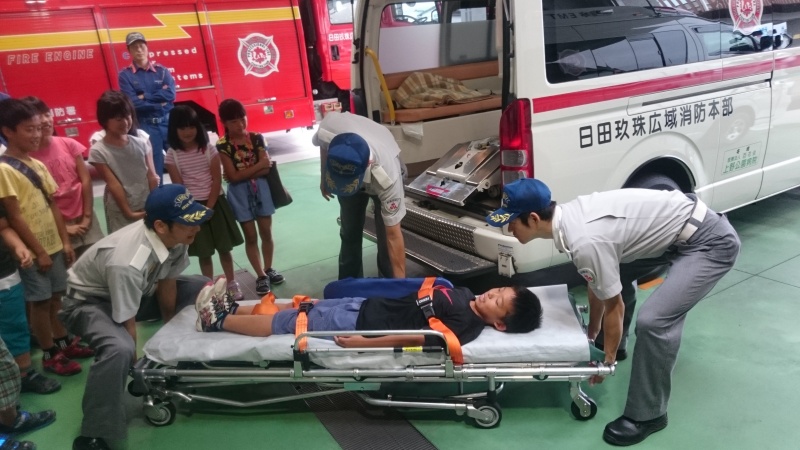 その後消防署では指令室を見学し、救急車の中や消防車の放水訓練などを見せていただきました。