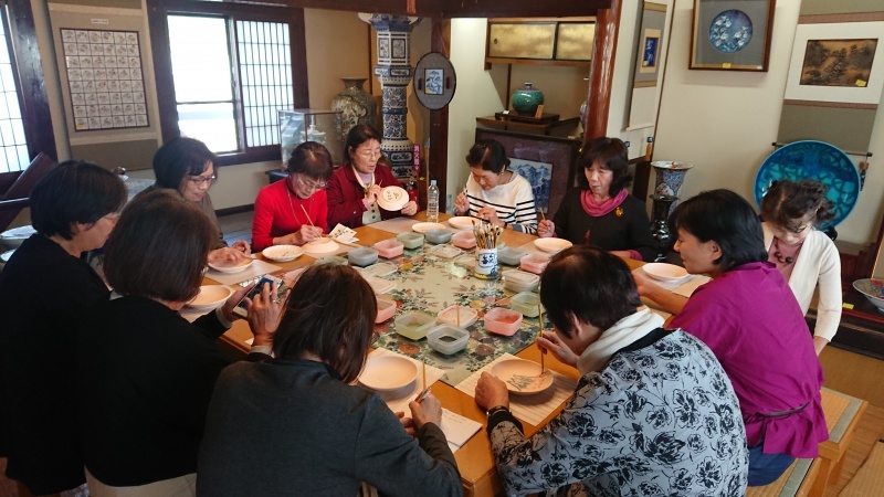 その後、有田焼の絵付け体験を行う丸兄商社さんに向かいました。