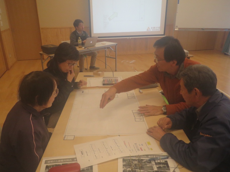 小学校の体育館をどう避難所として運営していくのかシュミレーションを行いました。