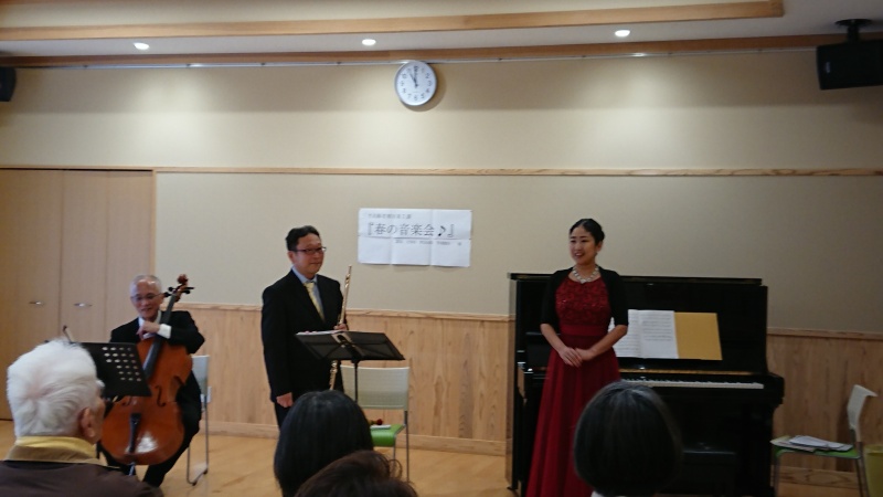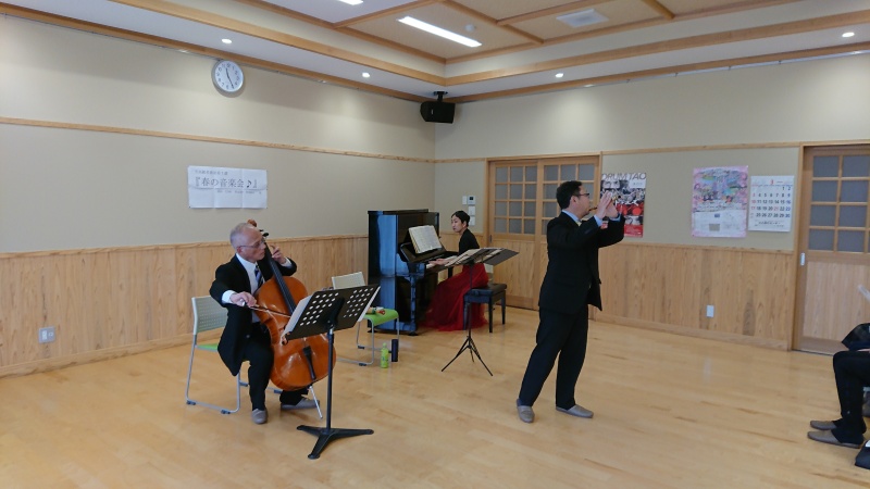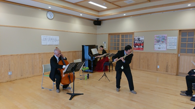 チェロ(諌山さん)、ピアノ(高嶋さん)、フルート(落合さん)の