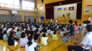 令和4年3月にウクライナから日本にやって来て、三芳小学校で共に学んできたベロニカさんとカリナさんが帰国することとなり、6月12日(月)、お世話になった地域の方々も招かれて、送別会が行われました。