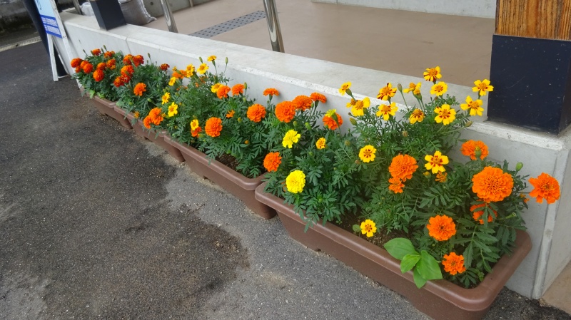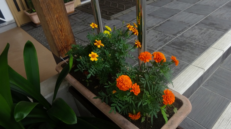 今、公民館の玄関は、マリーゴールドも綺麗です。しばらくは私たちの目を楽しませてくれると思いますヨ(^^♪