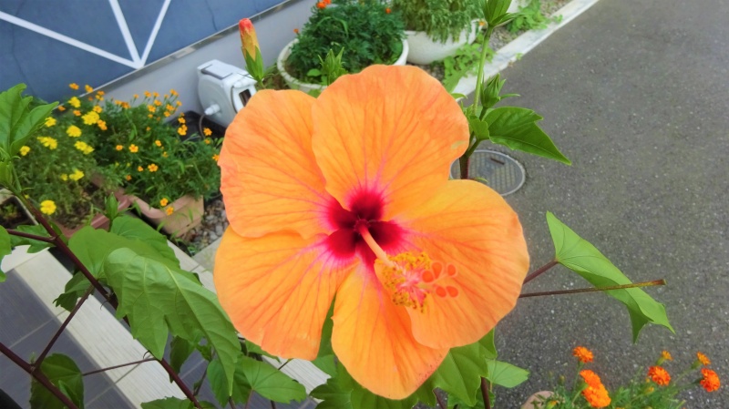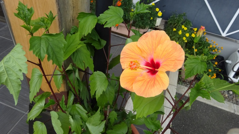 公民館玄関のハイビスカス開花しました!【R5/7後半】