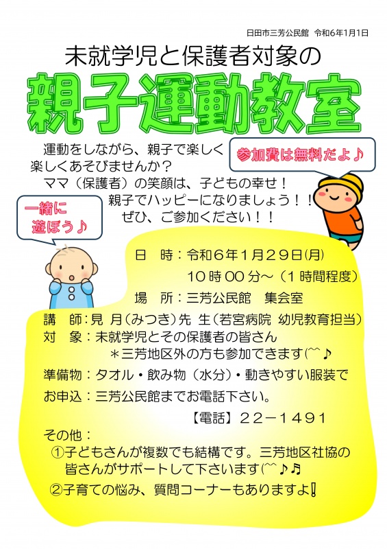 親子運動教室 参加者募集!【R6/1/29】