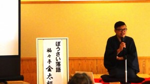 講師は福々亭金太郎さん(川嶋睦己先生・久留米市防災施設くるめウス 館長)