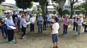 子ども達に加え、保護者や三芳っ子サポーターの皆さん、グラウンドゴルフチームの「久津会」の皆さんも一緒に、約40名が参加。