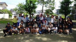8グループに分かれてゲームスタート。朝からとても暑い一日になりましたが、子ども達は「久津会」の方々に打ち方を教えてもらいながら、楽しくプレーしていました。