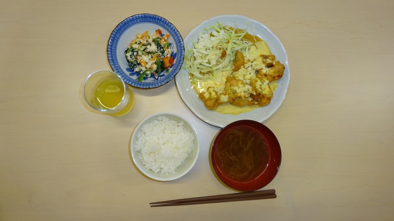 この日のメニューは「チキン南蛮」、「コンソメスープ」、「白和え」の三品です。