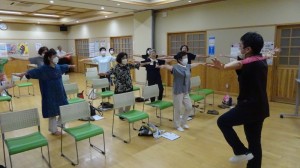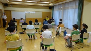 7月24日(水)の成人セミナーは、わかみやコミュニティケアセンター・リハビリスタッフの道田さん、金子さんの指導で、健康体操を行いました。