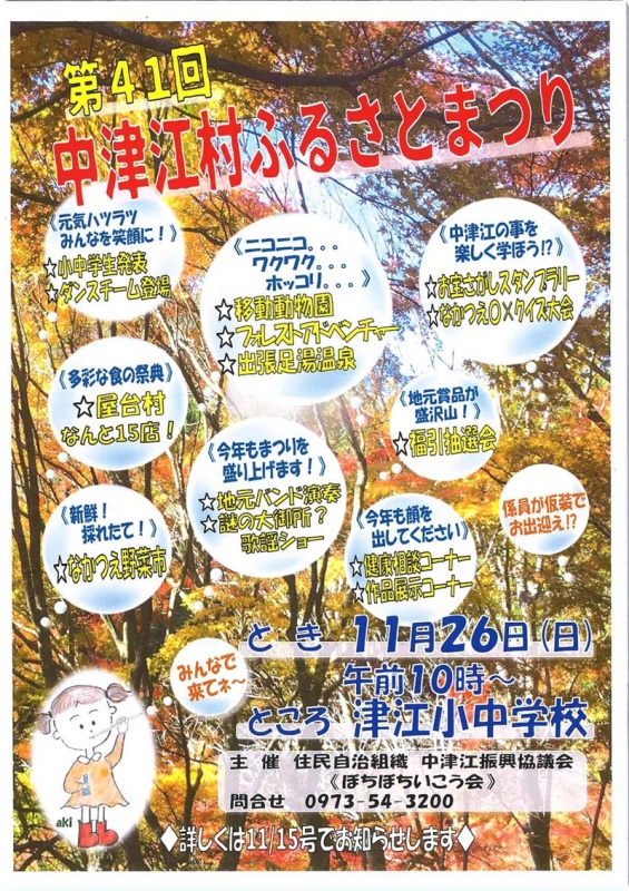 第41回中津江ふるさとまつりを下記のとおり開催いたします。