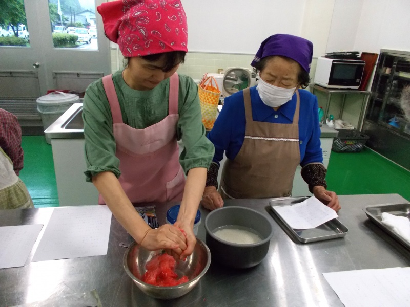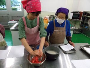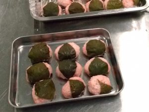 塩抜きしていた桜の葉(先生のお手製です!)も可愛く巻いて出来上がり。
