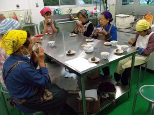 みんなで試食しながら、葉っぱの香りがアクセントになるスイーツについていろいろ話しました。