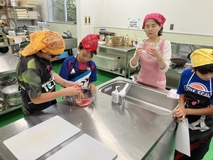 あいさつをして、まずは寒天と白玉づくりからスタートです。