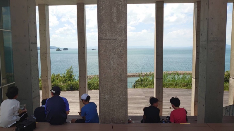 あしきたの海を眺めながら午後の活動のためにしっかり食べます!