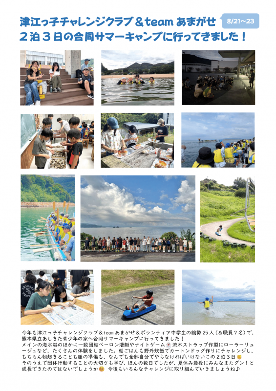 津江チャレ『teamあまがせと合同サマーキャンプ!』3日目