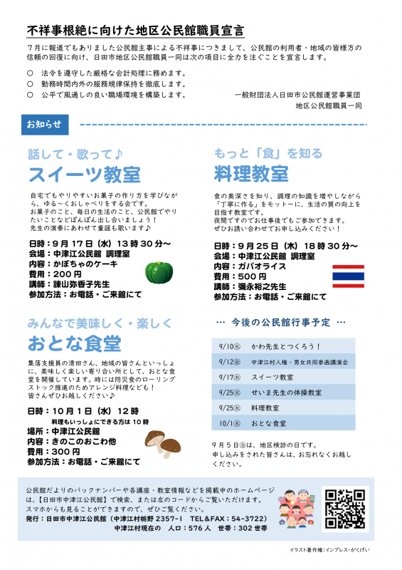 「中津江公民館だより」令和7年9月1日号を発行しました
