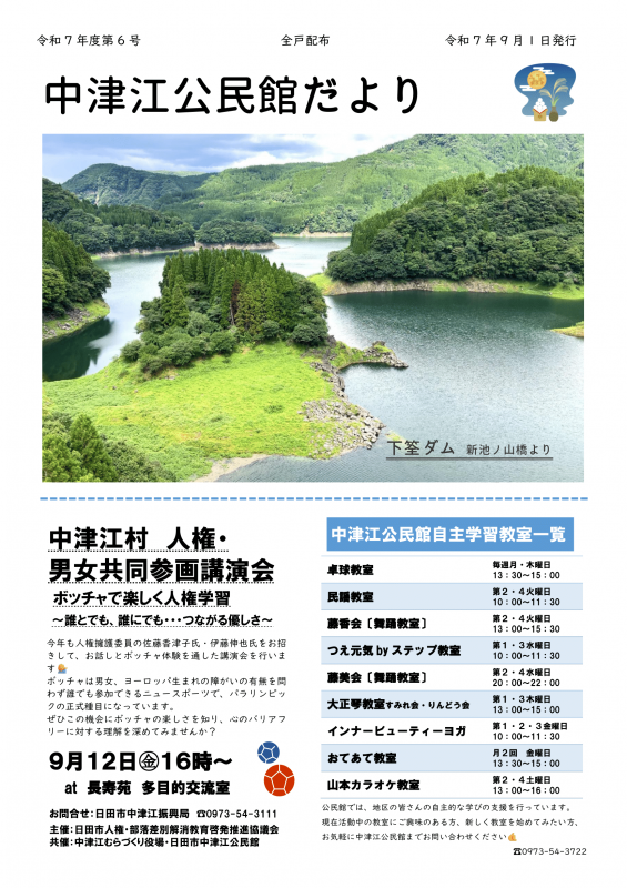 「中津江公民館だより」令和7年9月1日号を発行しました。