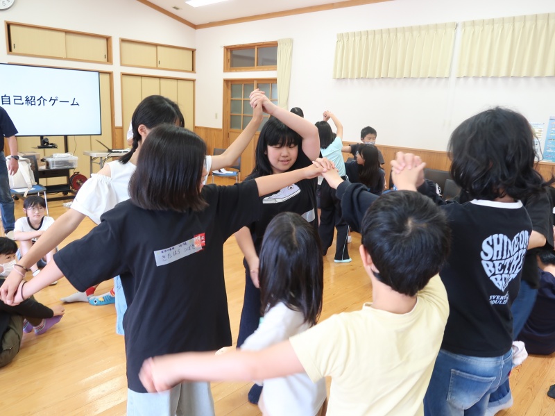 最初に職員の自己紹介、その後参加児童の自己紹介を行いました。