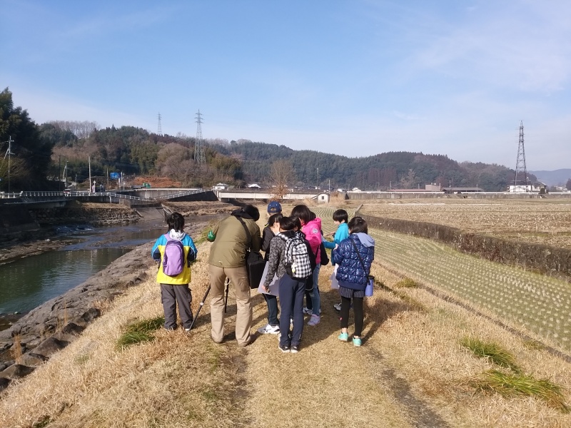 五島先生にご指導を受けて、野鳥観察会です。西有田公民館から川沿いを歩きながら鳥を探します
