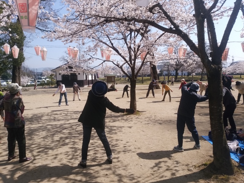 今日は亀山公園まで出向いています!桜満開の下で、体操!(^_^)