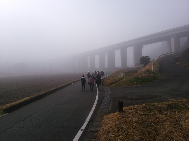 朝靄の中、午前中は月に1度のウォーキング教室です。今日は西有田公民館出発、往復の約6.5km! 日頃もウォーキングされているみなさんの足取りは軽やかです\(^_^ )