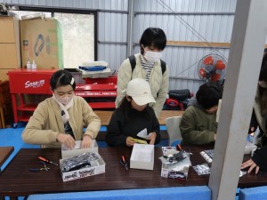 ミニ四駆を作るのはほとんどの子が初めてで、日隈さんや一緒に参加した保護者の皆さんと和気あいあいと作ります。