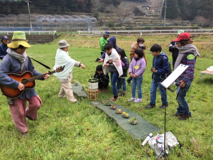 野草を摘んで、生花風に飾ってみたり、田んぼに寝転がって、