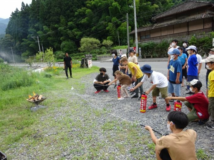 7月23日(土)谷のくまちゃん家を会場に、小野保育園、小野小学校の子どもたちと、その保護者に募集をかけ防災体験会を行いました。指導者はNPO法人リエラから松永さん、藤原さん、森山さんです。
