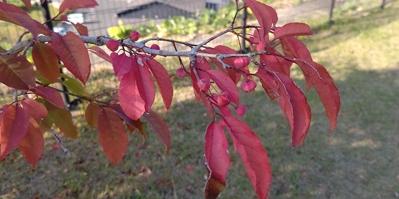 まず、陸上競技場の外周をみんなで歩きました。周辺にはナンキンハゼの紅葉と落葉。白い実もきれいです。イヌタデやマユミなど、この時期ならではのピンク色。歩くことで、日頃は目に留まらない植物の様々な色や形が見えますね。甘い香りのカツラは落葉が進んでおり、残念でしたが、いつか、ケーキのような甘い香りが漂う時にまた歩いてみてほしいです。
