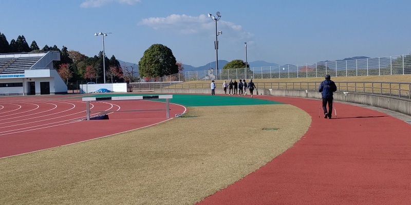 日田市陸上競技場は「市街地東部(田島3丁目)の丘陵地にある、全天候型400メートルトラックの第2種陸上競技場です。平日には児童から一般の方まで多くの人がトレーニングに利用し、週末には陸上記録会やサッカーの試合、また各種イベント等で利用されています」(日田市陸上競技場HPより転記)