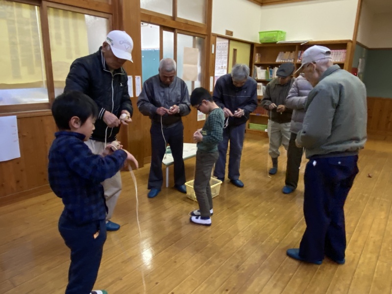 を老人会の方々に教えていただきながら、交流をはかりました。