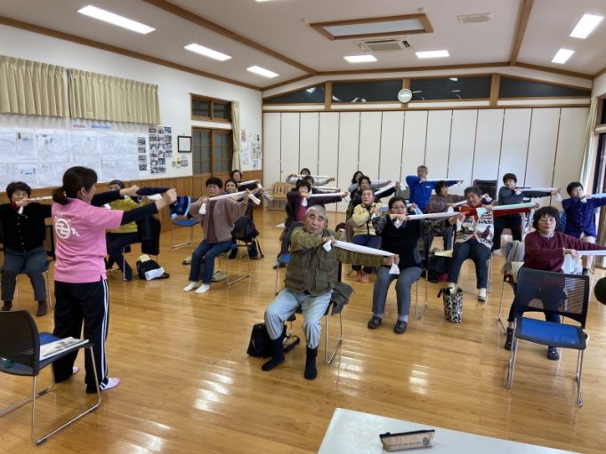 していただいた後、三花地区健康運動リーダーの財津さんに