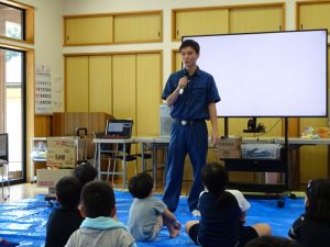 そして着替えて帰りの会の頃、小野小学校の校長先生がみんなの様子を見学に来てくださいました。