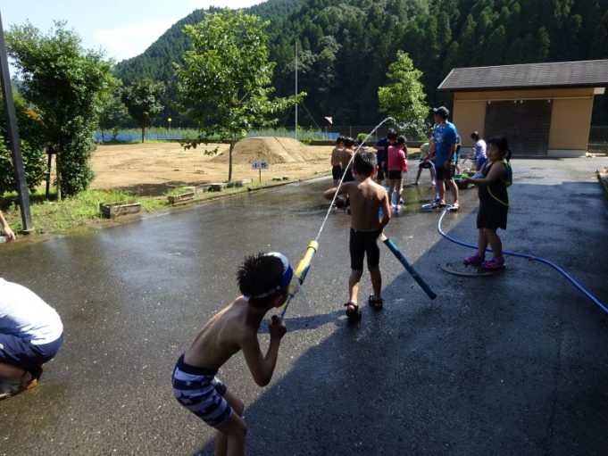 おなか一杯になって、休憩したあとは「水鉄砲大会!!」