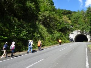 準備が出来たら歩きはじめます。向こうに見えるトンネルの中を歩きますよー!