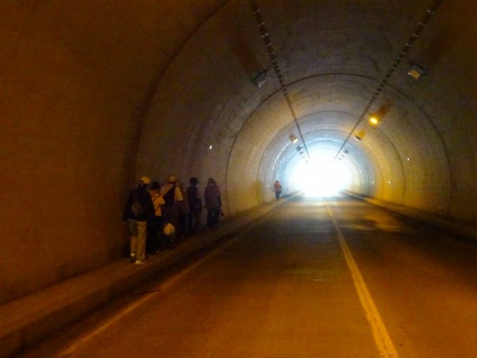 トンネルの中は涼しくて、ふんわりと明るくて、不思議な感じでした! 途中、1台トラックが追い抜いて行ったのですが、音の反響がすごくて、ずっと向こうの入り口辺りを通過している時から、まるですぐ近くに迫ってきているくらいの感じでした!!