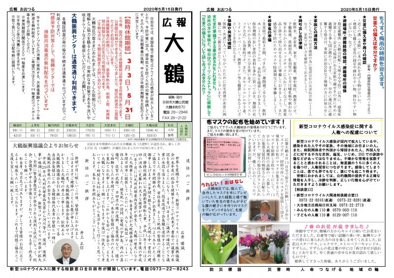 マスクの提供もまだ受け付けていますので、大鶴地区の皆様ご協力お願い致します。