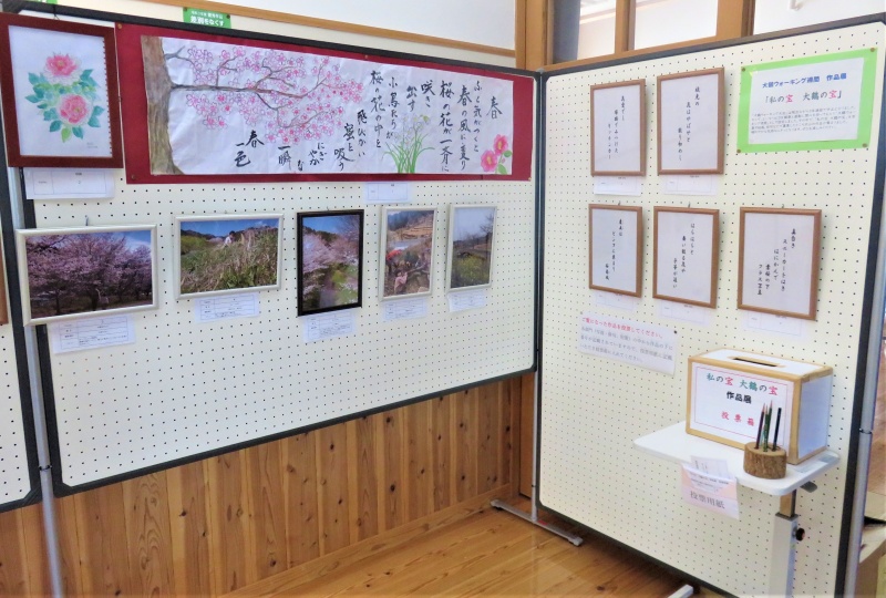 本日(令和4年4月25日)から令和4年5月下旬まで、大鶴公民館玄関ロビーにて作品展示を行っています。また『わたしの宝 大鶴の宝』作品展では、作品を見ていただいた方々に投票をお願いしています。