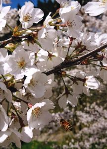 「3月24日、満開の桜にみつばち達が集まってきました。」
