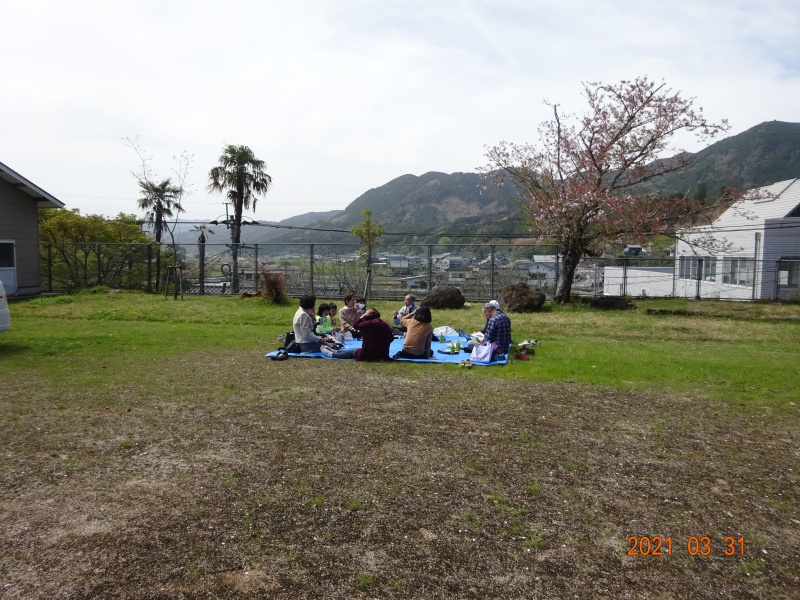 「お花の教室が終わってからお花を置いてスポーツ広場を3周しました。今年は桜がお見事で鳥たちの歌声を聞きながら四葉を探したりして歩きましたよ!」