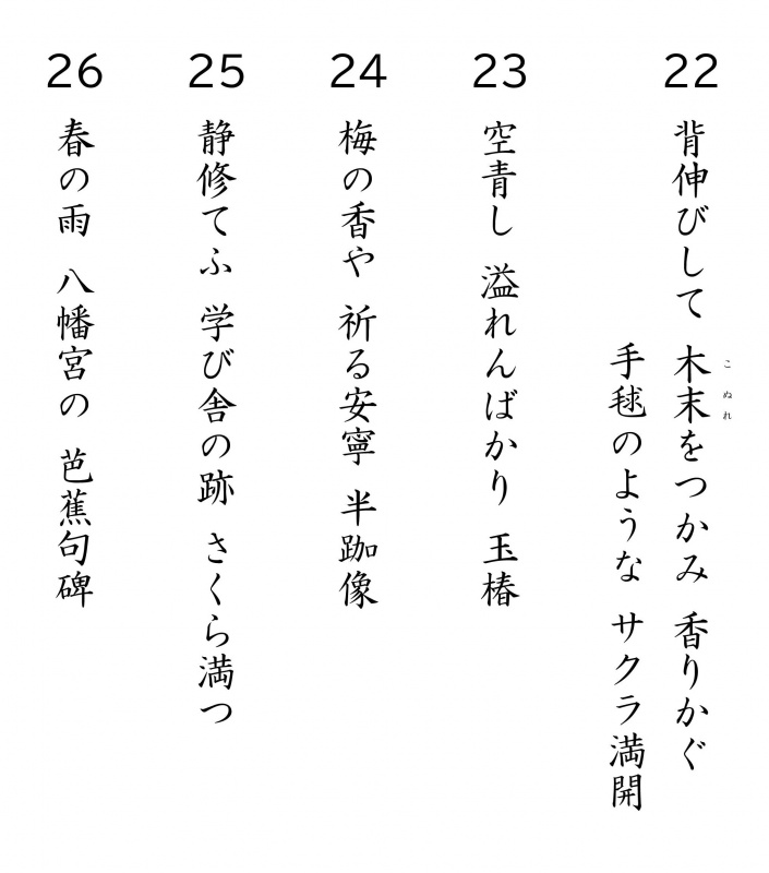 「おおつるの春」短歌・俳句部門 作品NO.22∼26