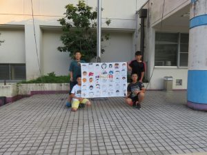 ということで大きな旗に皆の笑顔や似顔絵を描くことにしました。