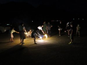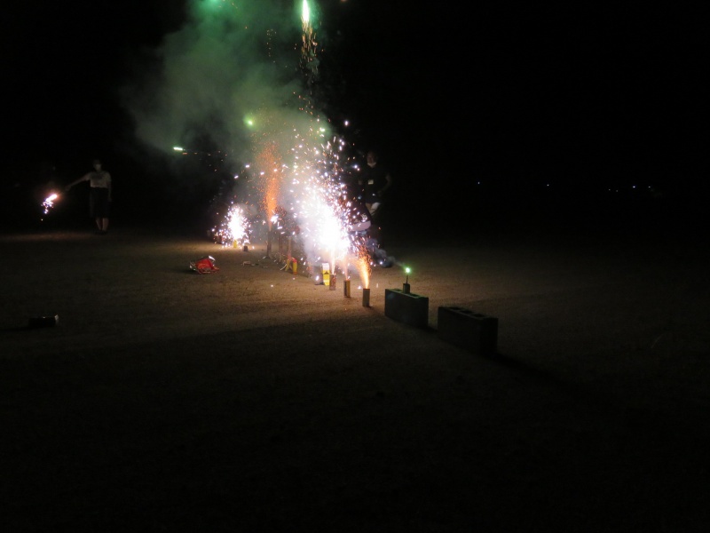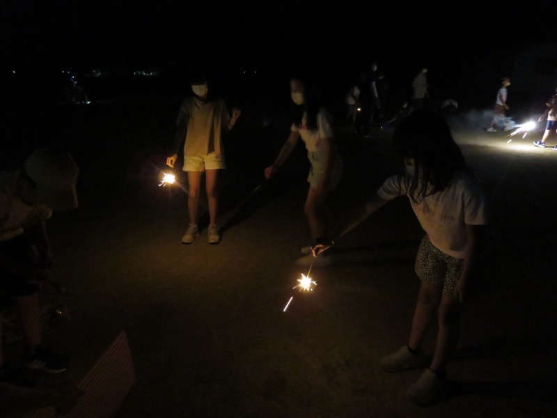 大明チャレンジ教室卒業生の中学生も交じっての花火大会。